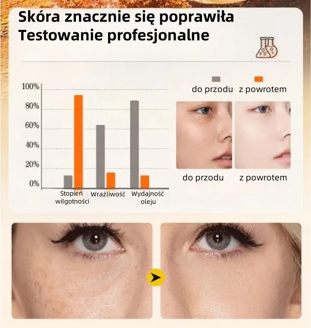 Poprawia elastyczność: Połączenie naturalnych składników sprawia, że skóra staje się jędrniejsza i bardziej elastyczna, co pomaga zwalczać wczesne oznaki starzenia.